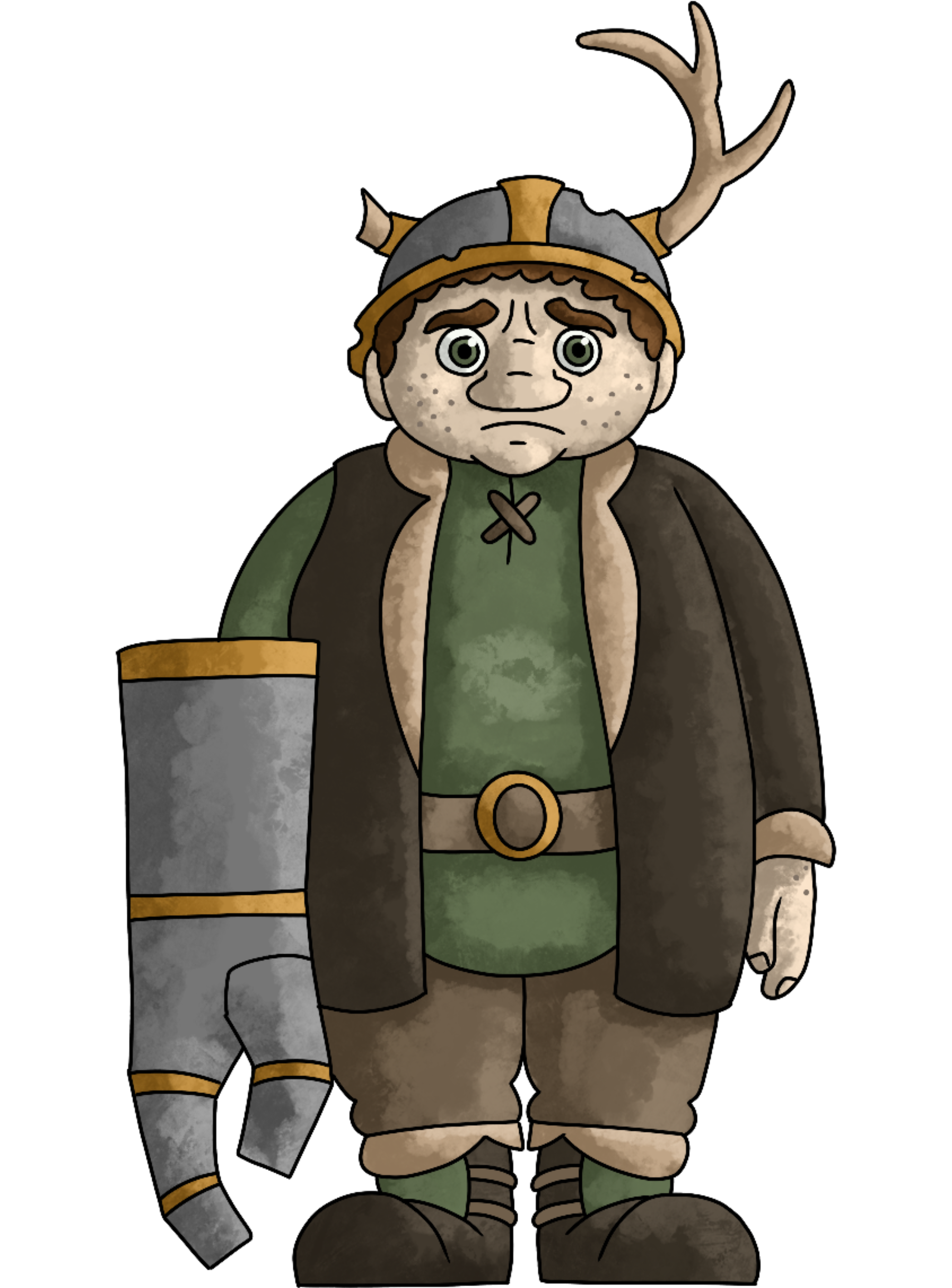 With Hameas’ latest iteration I changed very little from the previous design. I made the lines a bit thinner and made the coloring more textured, as well as returning his one antlered helmet without the cost of covering his facial expressions to create a more distinctive silhouette.